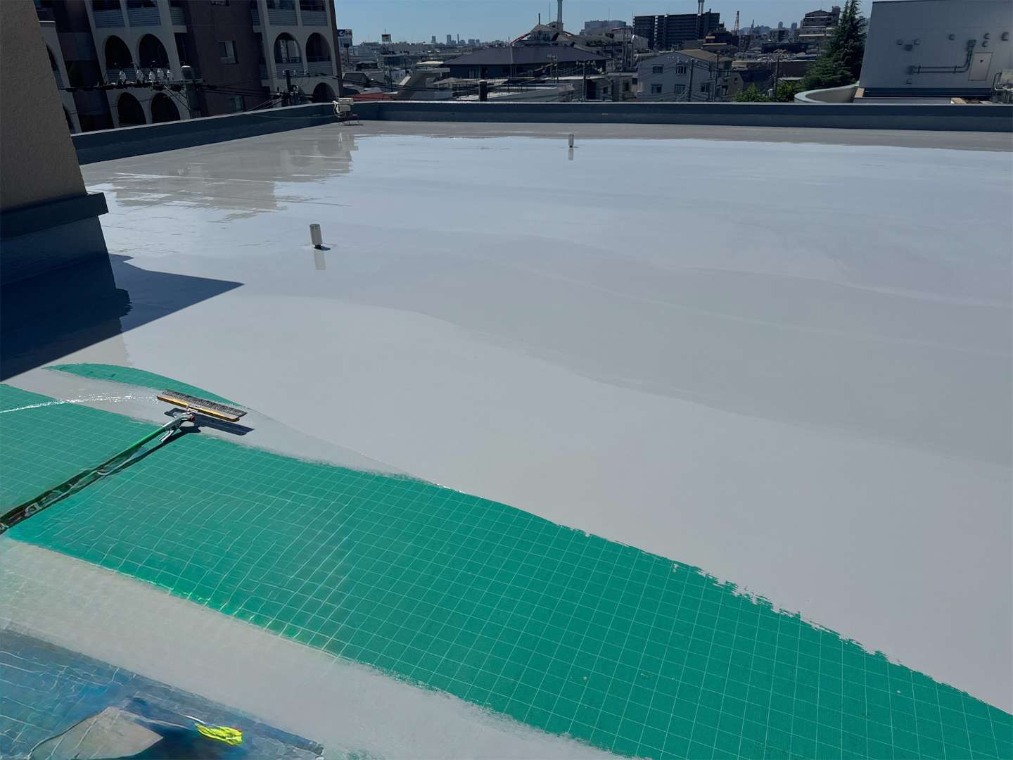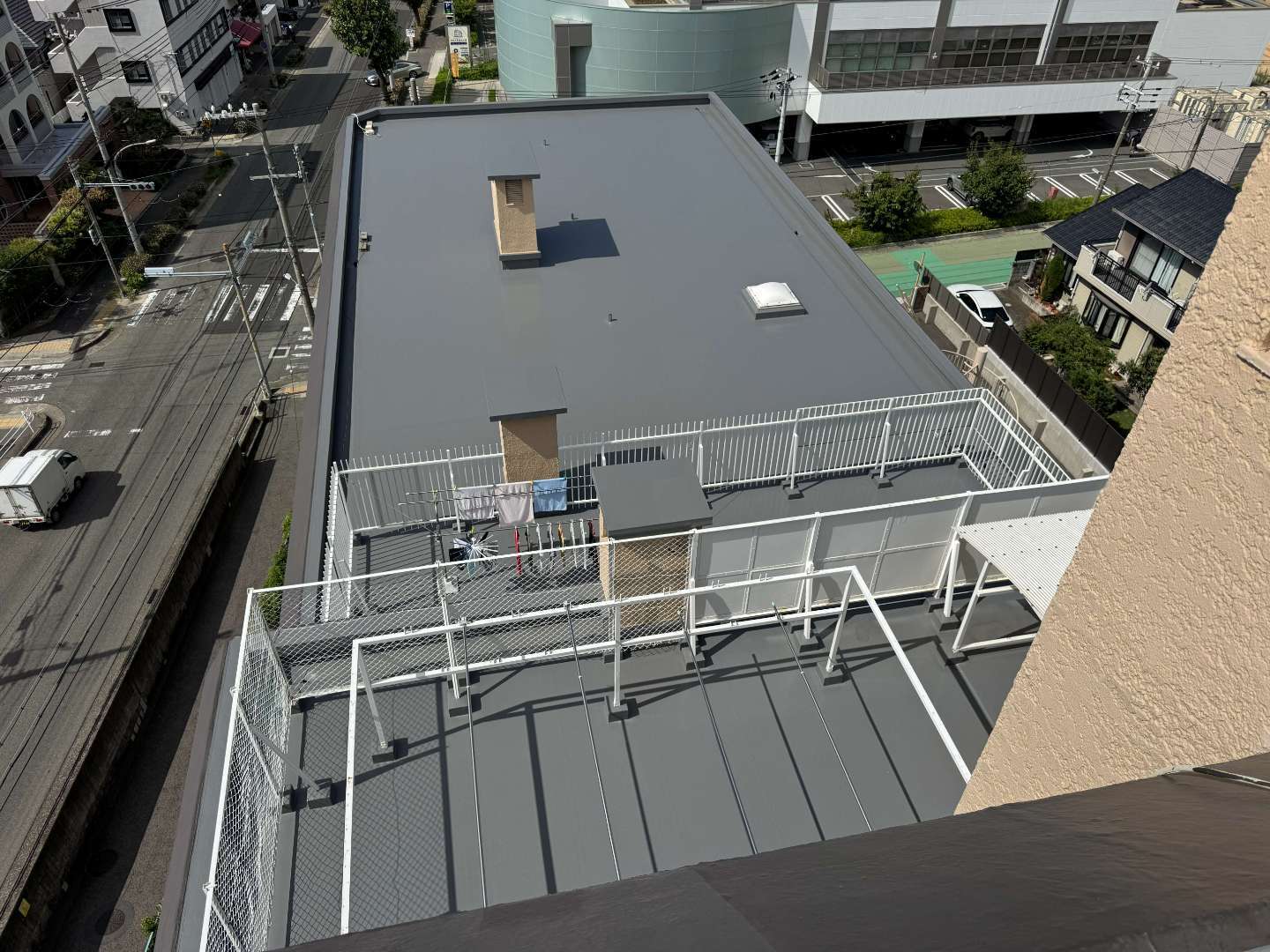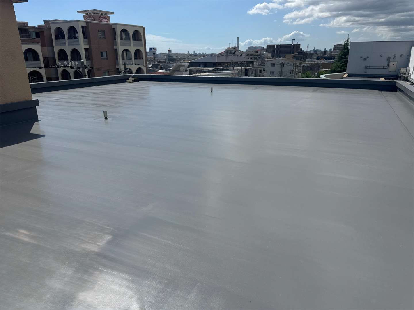 施工面積は屋上とパラペットを合わせて約1,000㎡と大規模でしたが、細部まで丁寧に仕上げることで強度と美観の両立を実現しました。