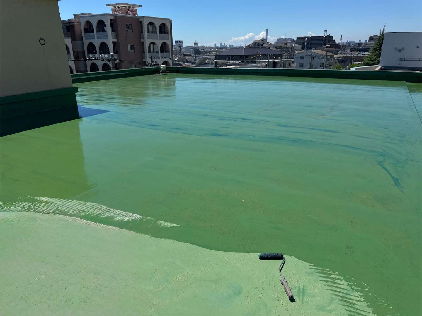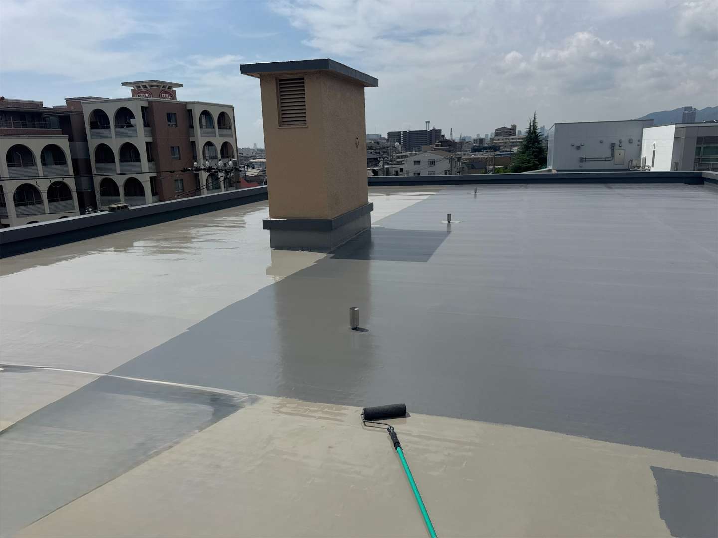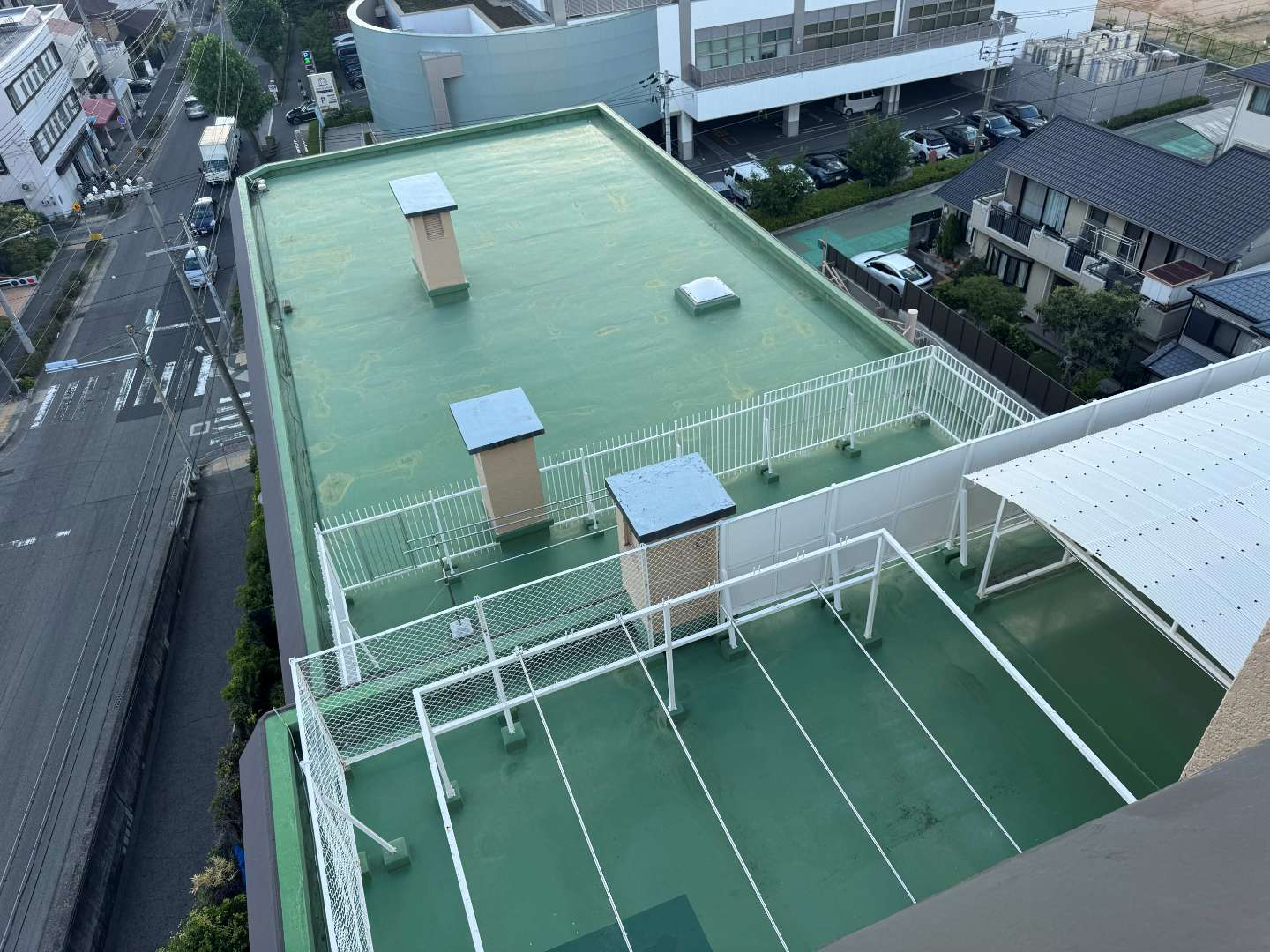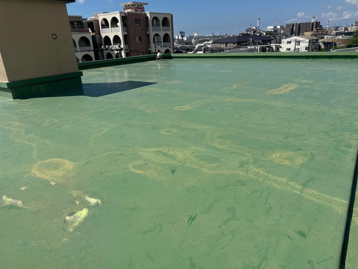 施工面積は屋上とパラペットを合わせて約1,000㎡と大規模でしたが、細部まで丁寧に仕上げることで強度と美観の両立を実現しました。