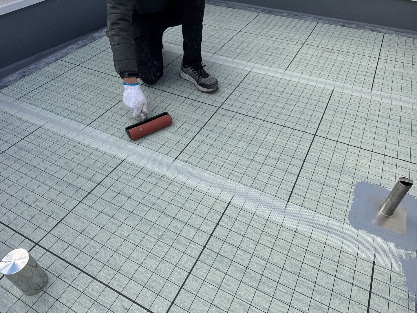 仕上がりはフラットで継ぎ目のない防水層となり、見た目も一新。
